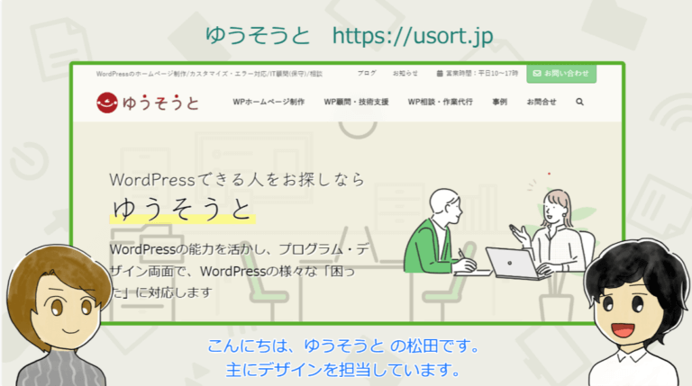 ゆうそうと の松田と兎本のキャラクターが「ホームページ制作」と「WordPressプライベートレッスン」をご紹介するゆっくり解説風動画を作りました!ぜひご覧ください。 ゆっくり解説風動画について YouTubeで人気のあ … 続きを読む キャラクターがしゃべる!ゆっくり解説風動画を作りました